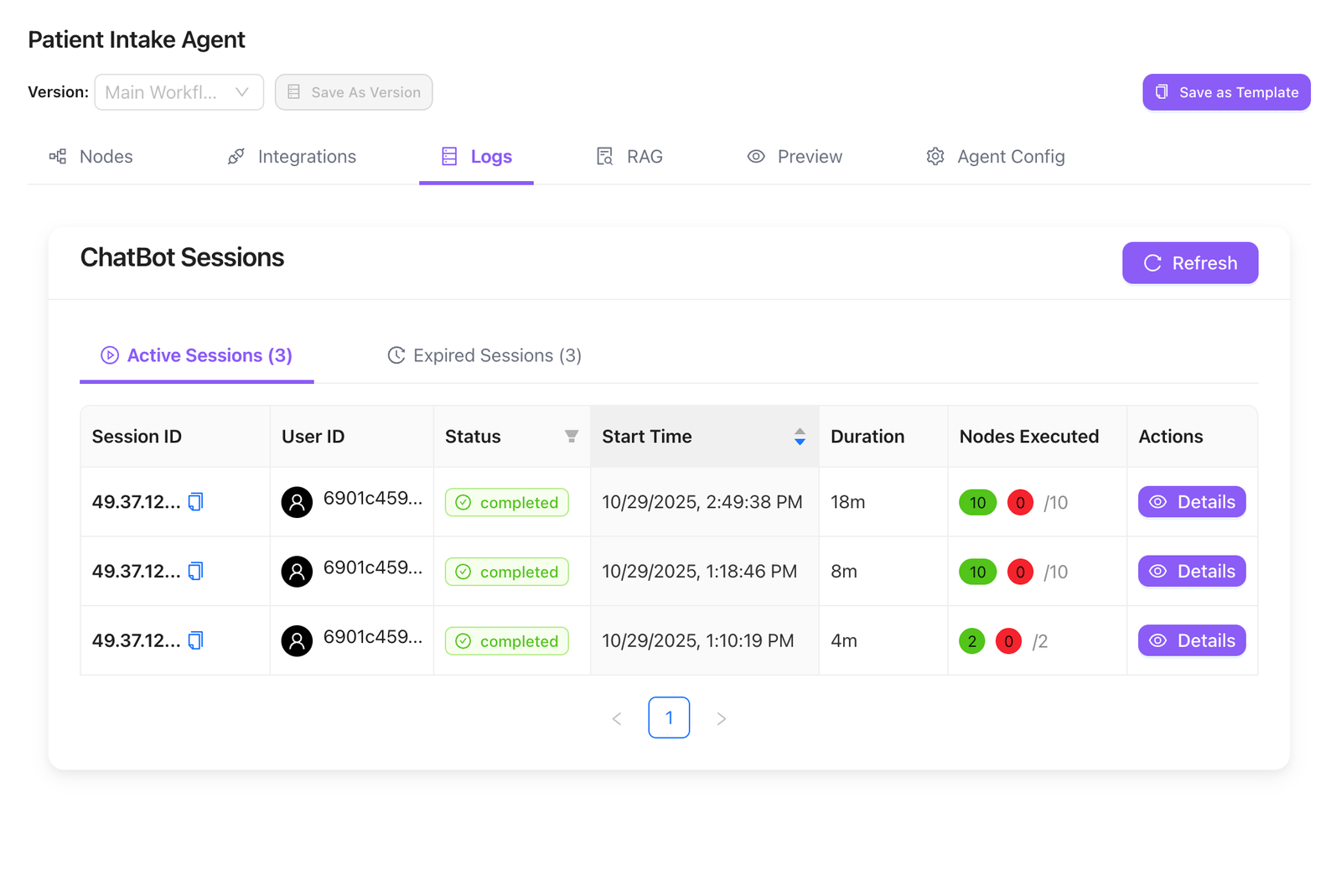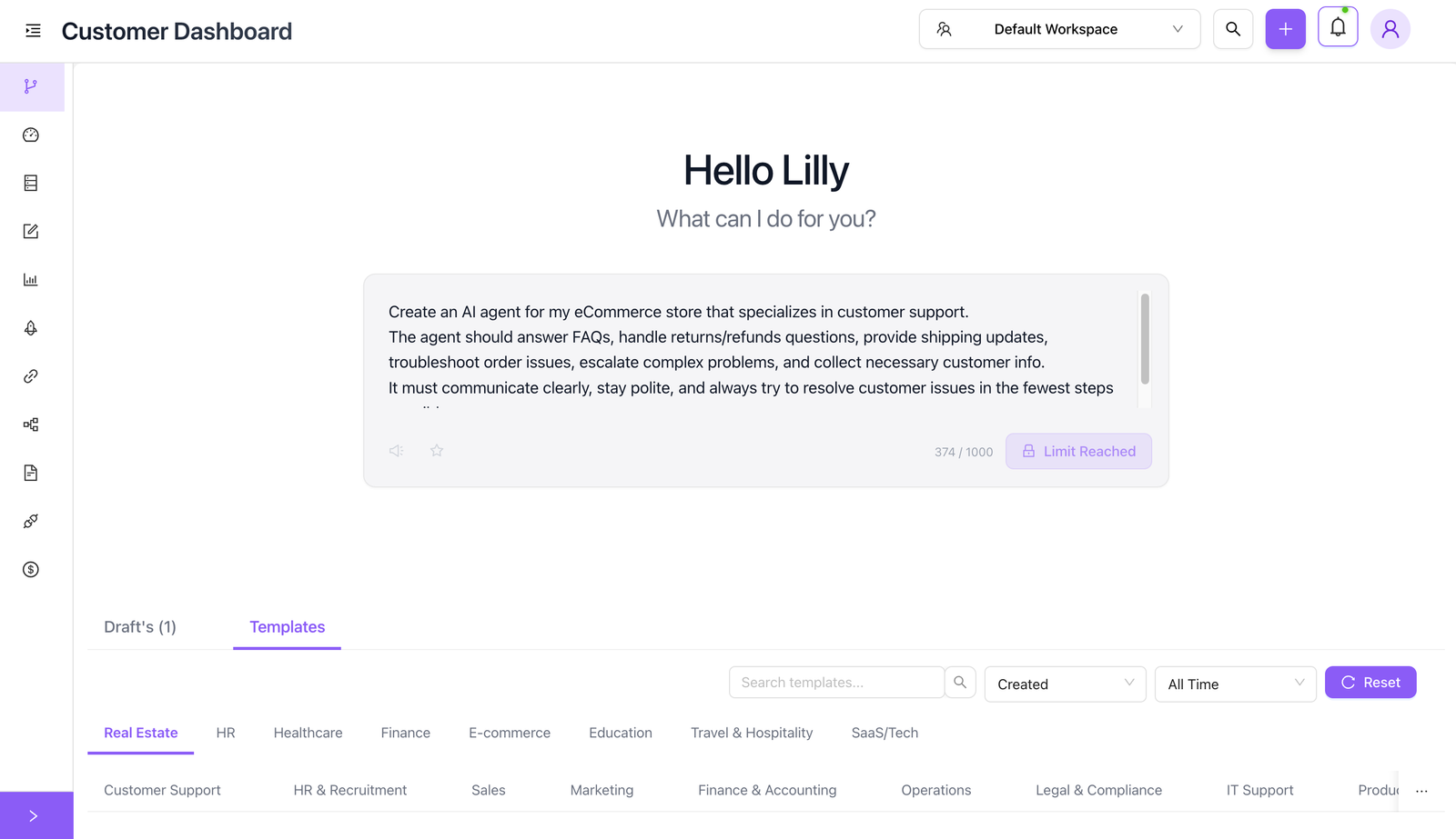 Build specialized agents for different business functions with our intuitive no-code interface. Enable, disable, or modify agents with one click.