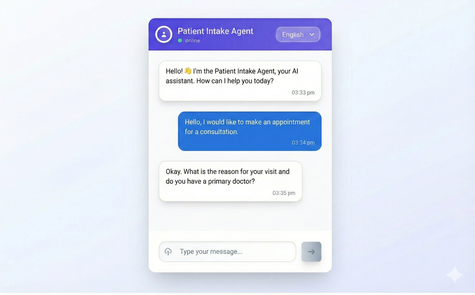 Collect patient data → check calendar → book appointments.